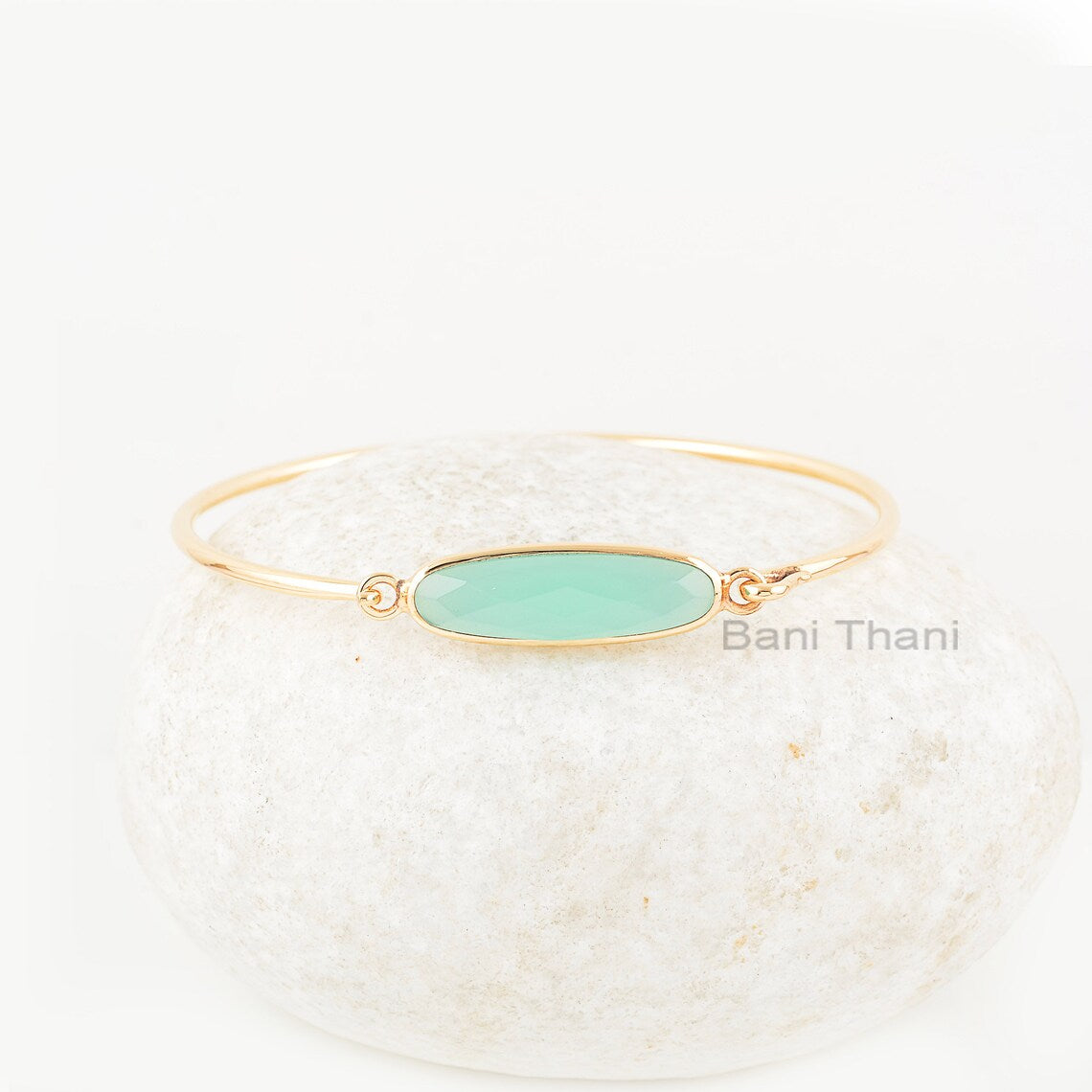 Aqua Chalcedony Bracelets - 925 Silver - Rose Gold Plated Bracelet - 7x25mm Oval- Birthstone Jewelry - Gift For Girls - Jewelry for Date
