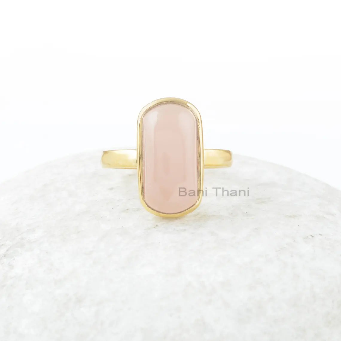 Pink Chalcedony Ring, Pink Chalcedony 9x16mm Rounded Rectangle Sterling Silver Ring, Gemstone Ring, Gold Plated Ring, Wedding Gift For Bride