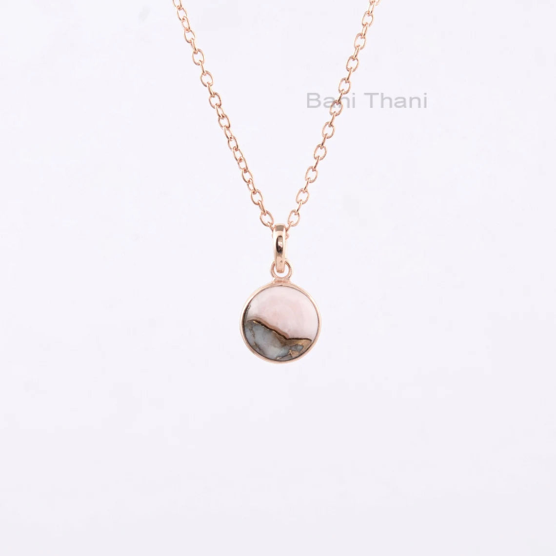 Pink Opal Copper 12mm Round Gemstone Necklace, 925 Sterling Silver Rose Gold Plated Necklace, Bridesmaid Necklace, Anniversary Gift Necklace