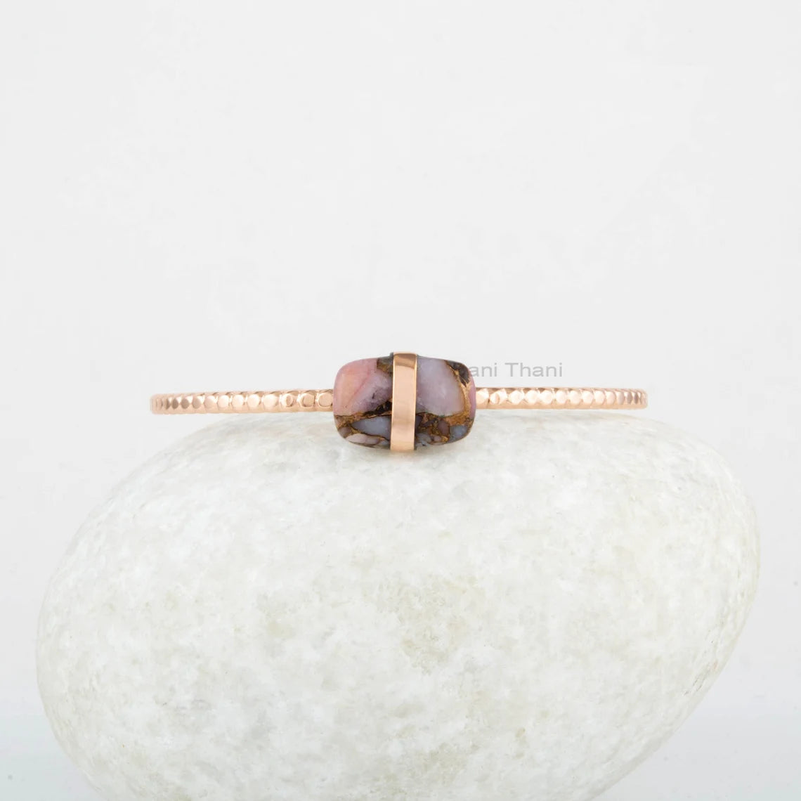 Pink Opal Copper Bracelet - 9x14mm Cushion Gemstone Jewelry - Gold Plated Bangle - 925 Silver Cuff Bangle - Jewelry for Women - Gift for Her