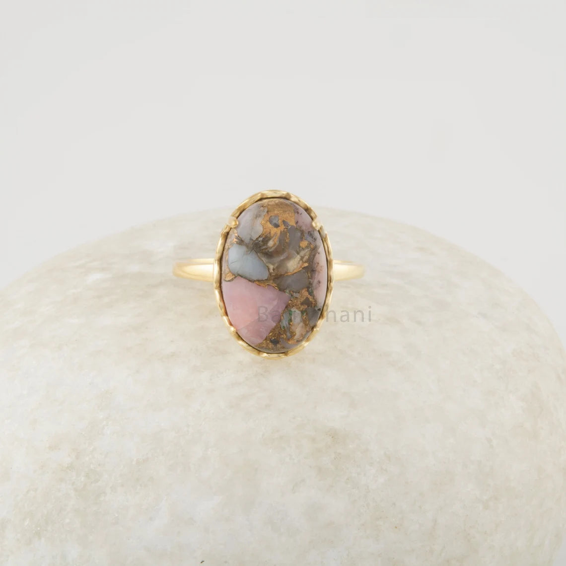Pink Opal Copper Ring - 11x16mm Oval Shape Gemstone - Handmade 18k Gold Plated - Dainty Jewelry - Gift For Lover - Jewelry For Daughter