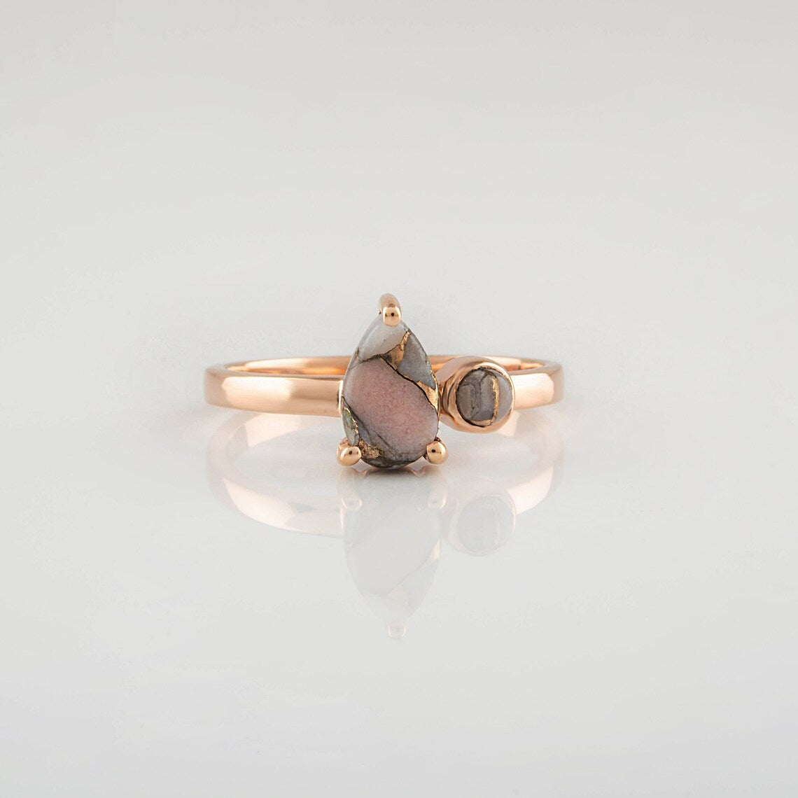 Pink Opal Copper Ring - 5x8 mm Pear Opal Ring - Stacking Ring - Rose Gold - Silver Gemstone Ring - Minimalist Ring - Dainty Gift For Her