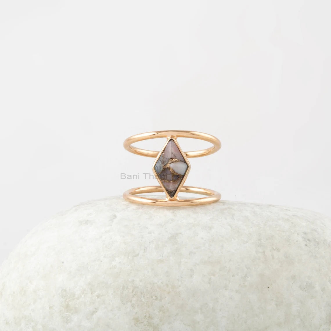 Pink Opal Copper Ring - Gemstone Ring - 7x12mm Diamond - 925 Silver - Ring for Women - Handmade Ring - Jewelry for Best Friend -Gift for Her