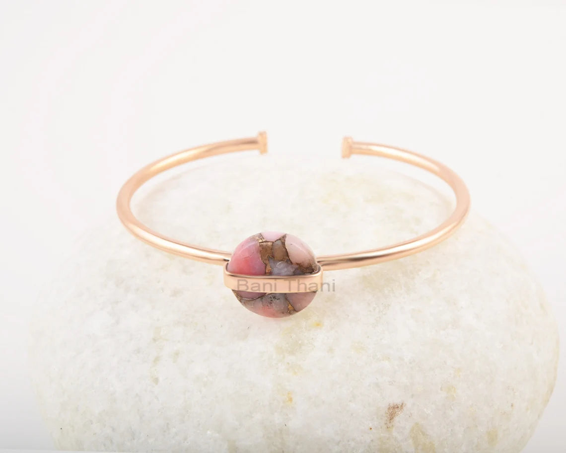 Pink Opal Cuff Bracelet, 925 Sterling Silver, Opal Round Bangle, Wholesale Jewelry, Cuff Bangle, Gift for Girlfriend, Rose Gold Bracelet