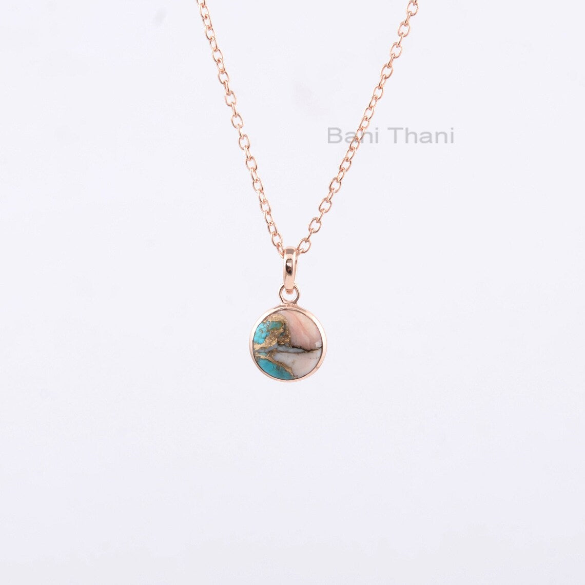 Pink Opal Copper Turquoise Necklace - Solid Silver - Gold Plated Pendant Necklace - 12mm Round - Gift For Daughter - Jewelry For Everyday