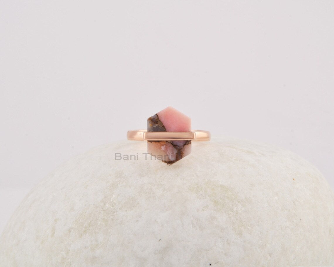 Pink Opal Ring - Gemstone Silver Hexagon Ring - Rose Gold Plated Silver Ring - Statement Ring - Delicate Ring - Gift for Her - Cocktail Ring