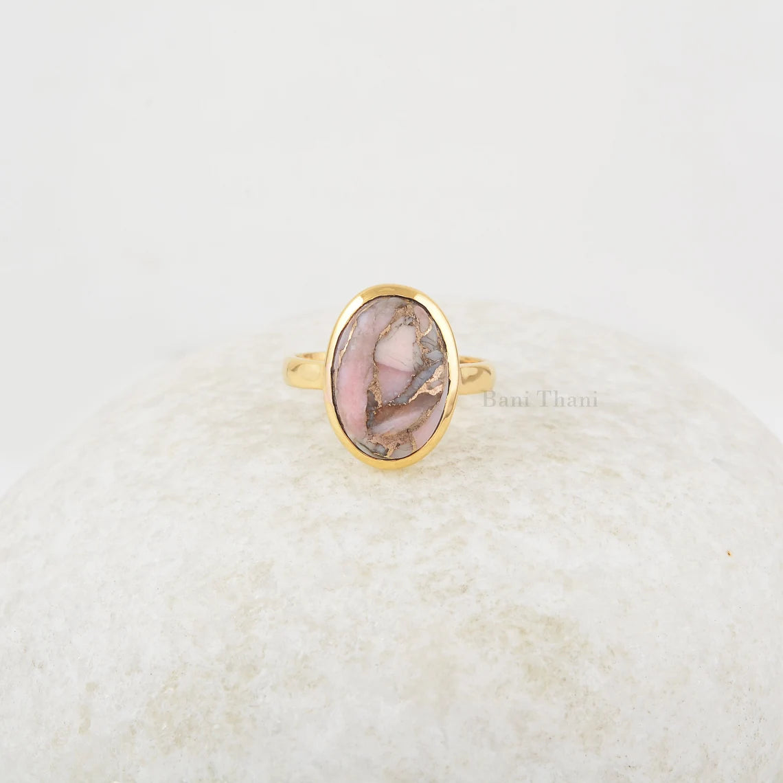 Pink Opal Ring - Pure Silver - Handcrafted Ring - Copper Pink Opal Oval Ring - Dainty Jewelry - Gift For Lover - Jewelry For Grand Daughter