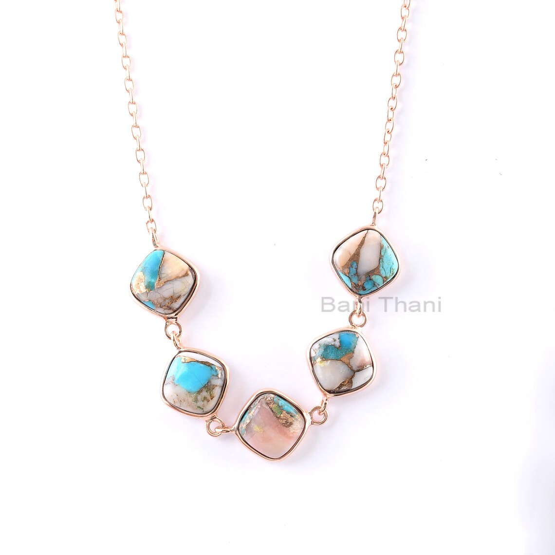 Pink Opal Turquoise Necklace - 925 Sterling Silver - 10mm Cushion - Gemstone Pendant Necklace - Gift For Christmas - Jewelry For Artist