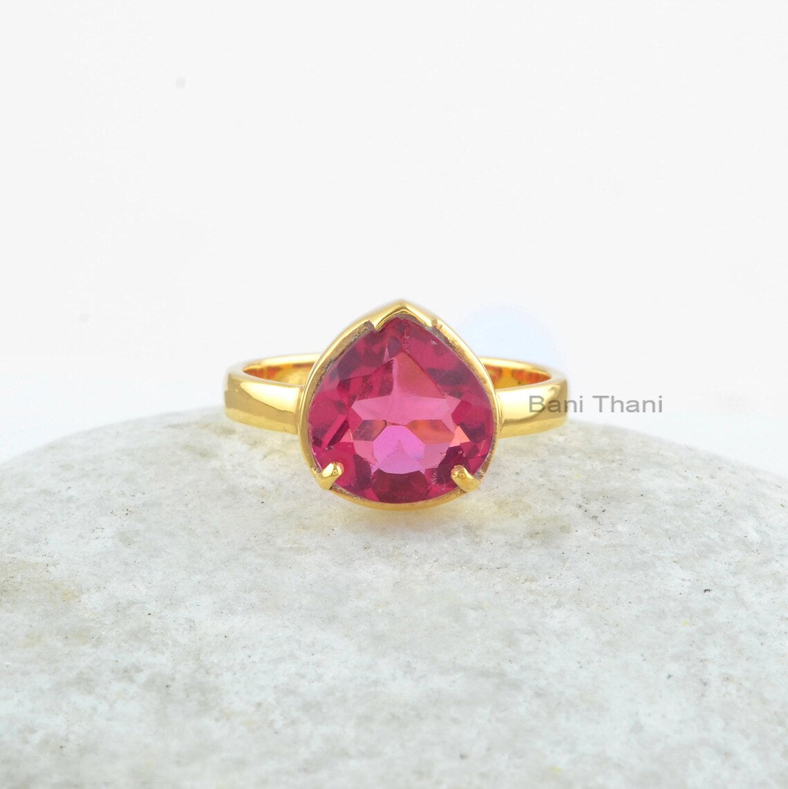 Pink Tourmaline Quartz Ring - Pink Tourmaline 10mm Heart Ring - Gold Plated Ring - 925 Sterling Silver Ring - Handmade Ring - Gift For Wife