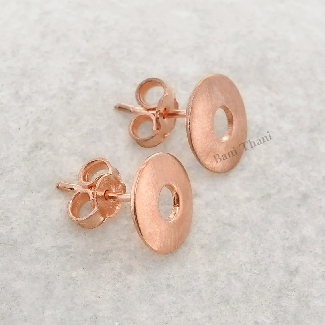 Plain Silver Rose Gold Plated Stud Earrings, Rose Gold Round Stud Earrings, 925 Sterling Silver Earring, Dainty Earring, Vintage Earring