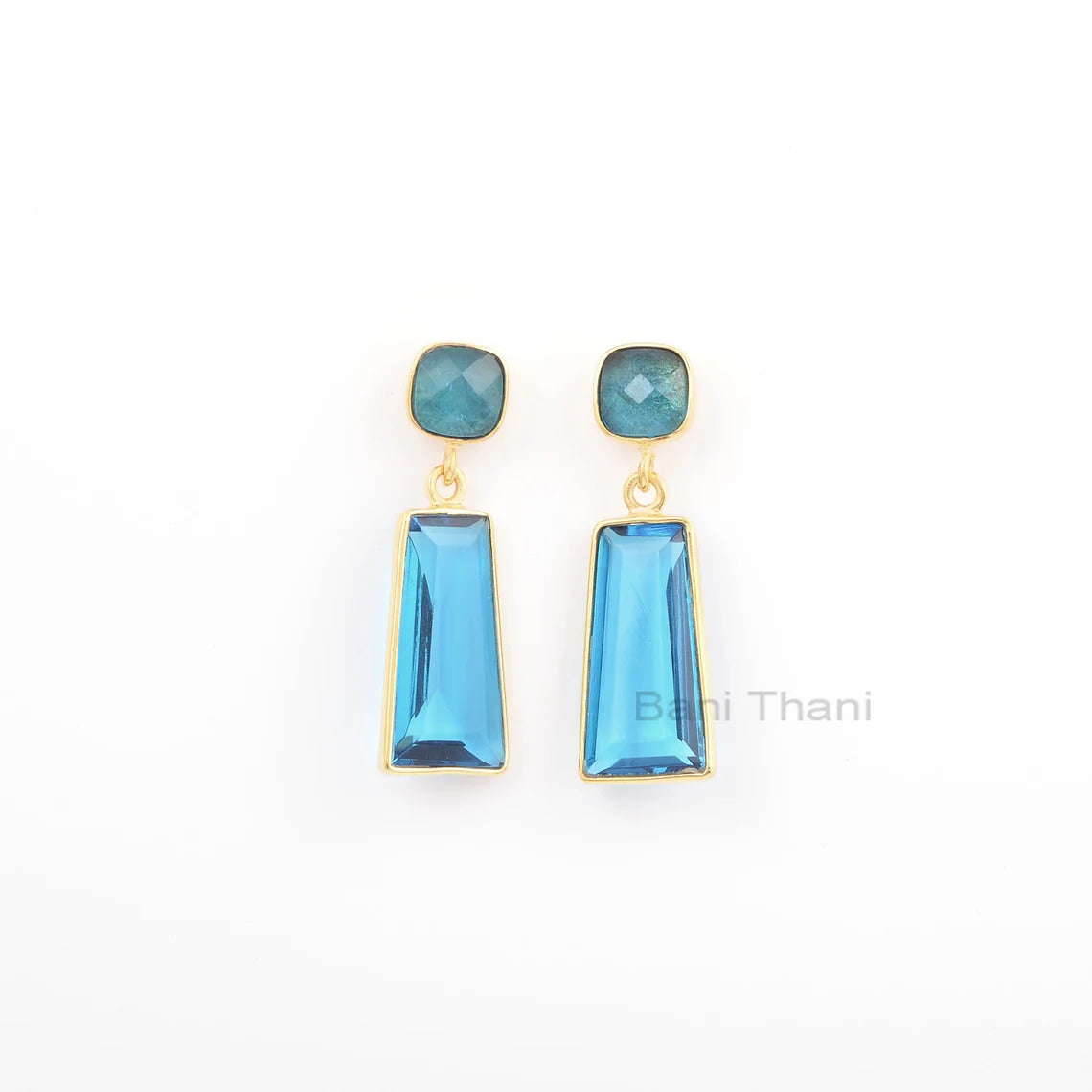 Pretty Blue Quartz Earrings, Blue Quartz Cushion Rectangle Shape Gemstone Earrings, 18k Gold Plated Earring, 925 Silver Earring,Gift For Her