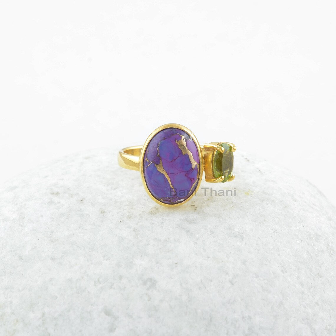 Purple Copper Turquoise Ring - Peridot Gemstone Ring - Solid 925 Sterling Silver Ring - Gift for Mom - Handmade Ring - Jewelry for Bridesmaid