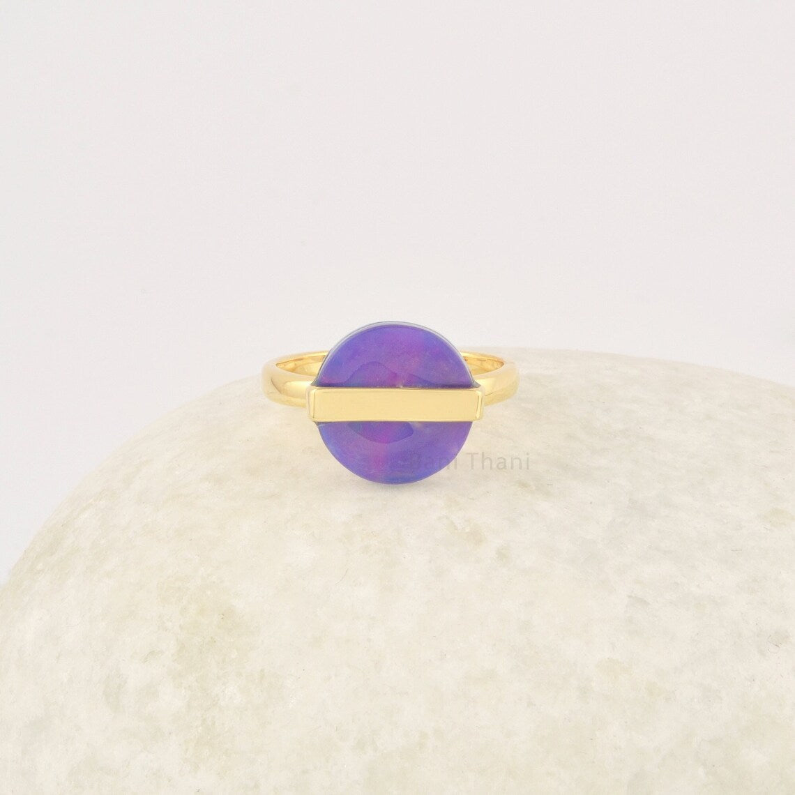Purple Opal Ring, Round Flat 12mm Aurora Opal Gemstone Ring, 925 Sterling Silver Vintage Ring, 18k Gold Plated Purple Ring, Jewelry For Gift