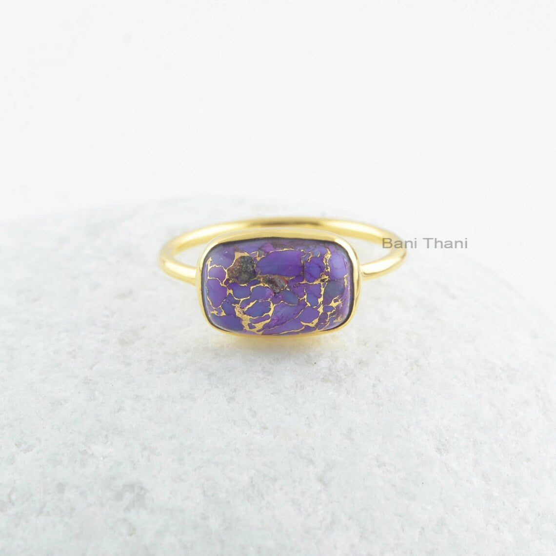 Purple Turquoise Ring-Copper Purple Turquoise 8x12mm Cushion Sterling Silver Ring-Gold Plated Ring-Sterling Silver Gemstone Ring-Women Gift