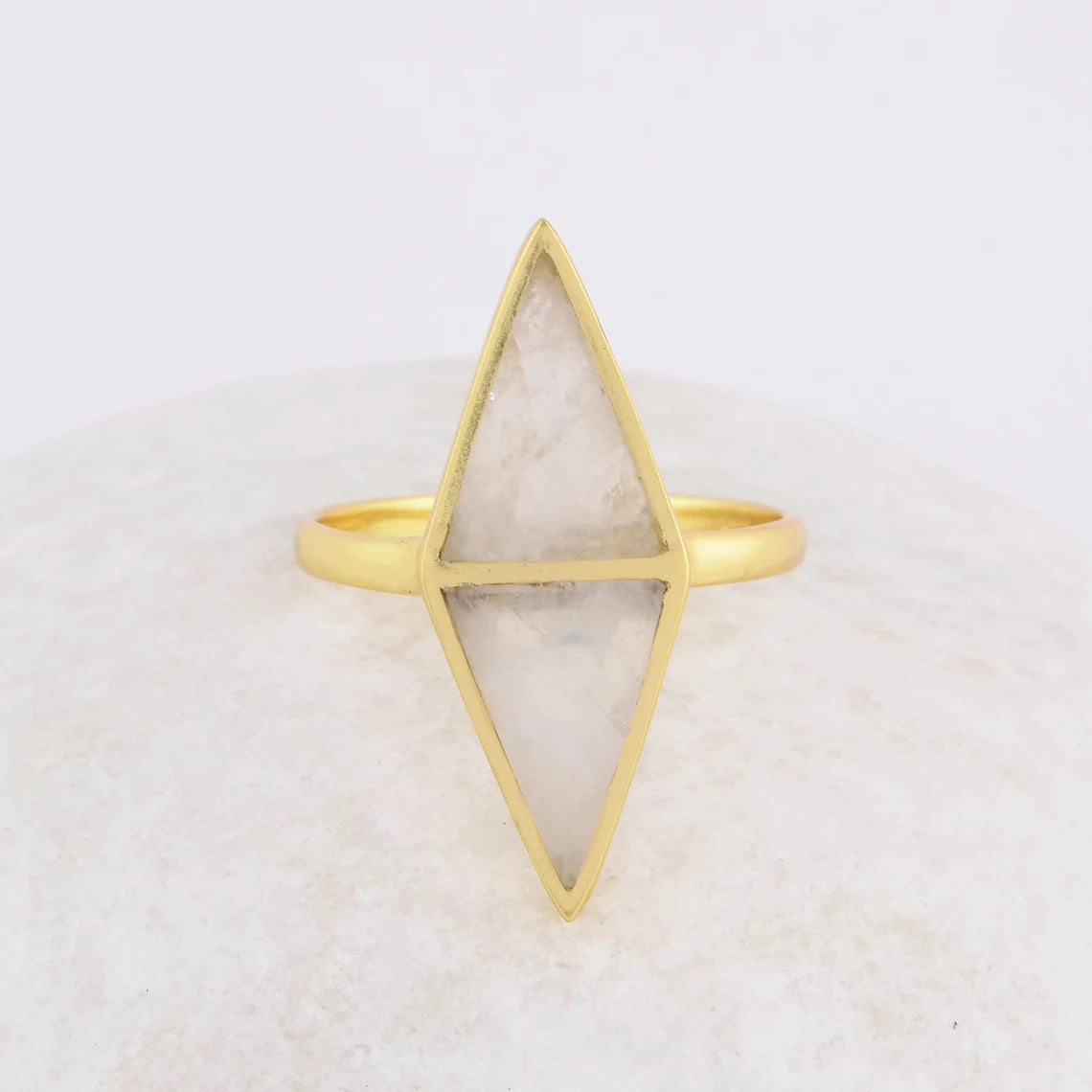 Rainbow Moonstone Ring - Gold Plated Ring - Solid Silver - 10x13mm Double Triangle - Personalized Jewelry - Gift for Lady - Jewelry for Prom