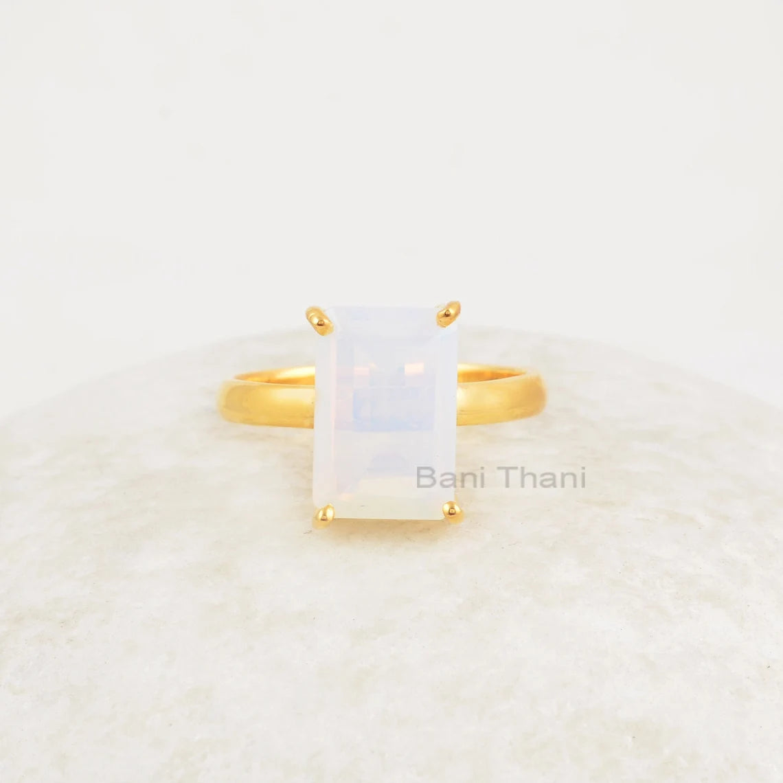 Rectangle Opalite Ring - 8x12mm Gemstone Ring - Micron Gold Plated Ring - 925 Solid Silver - Prong Ring - Womens Gift Jewelry - Dainty Ring