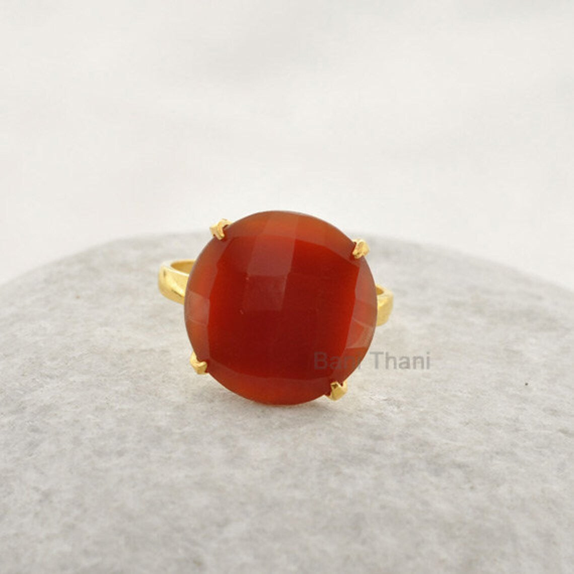 Red Onyx 15mm Round Gemstone Ring, Micron Gold Plated 925 Sterling Silver Ring, Engagement Gift Ring, Prong Set Ring, Boho Ring, Ethnic Ring