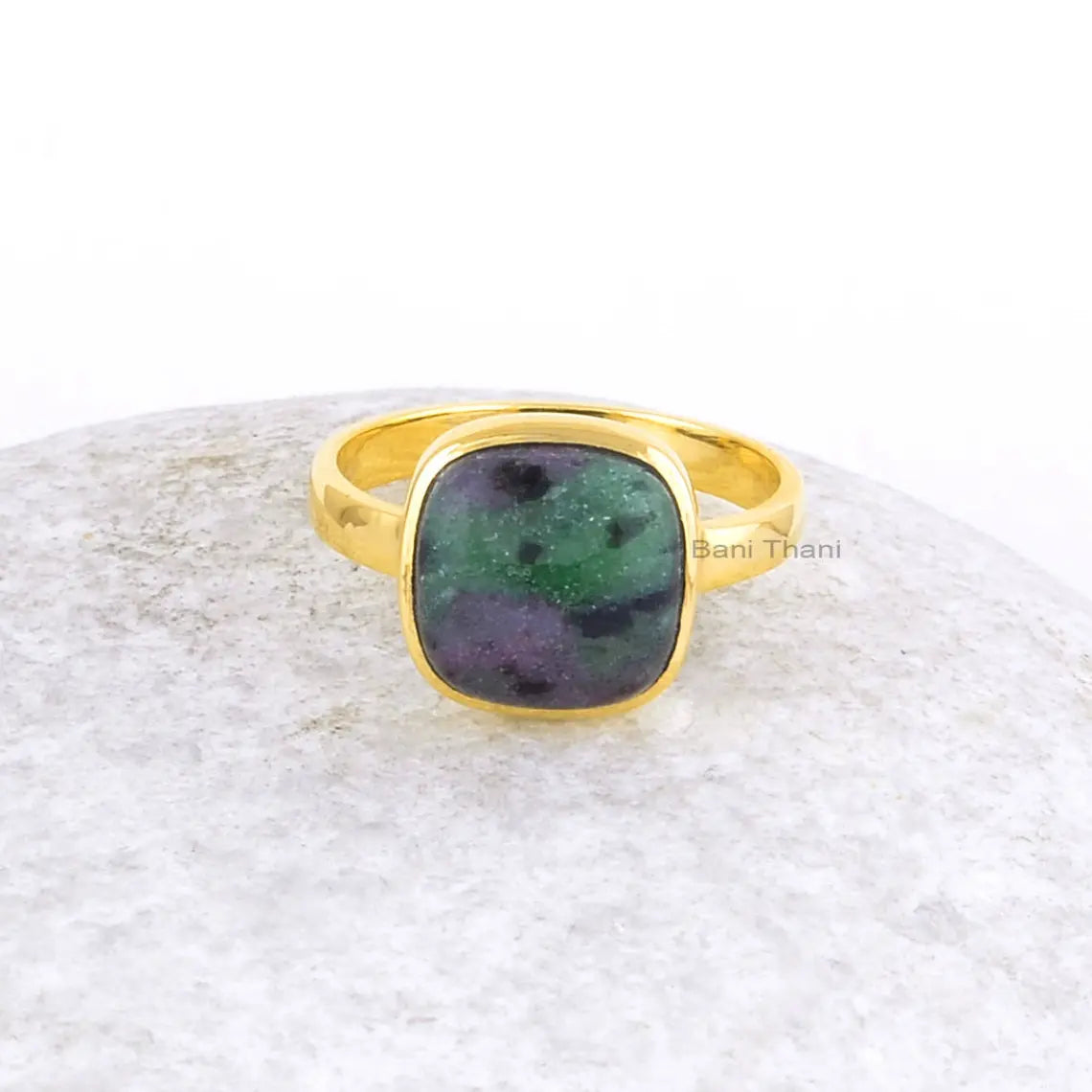 Ruby Zoisite Gemstone Ring - 10mm Cushion Ring - 925 Sterling Silver Ring - Gold Plated Ring - Ring for Women - Promise Ring - Gift for Her