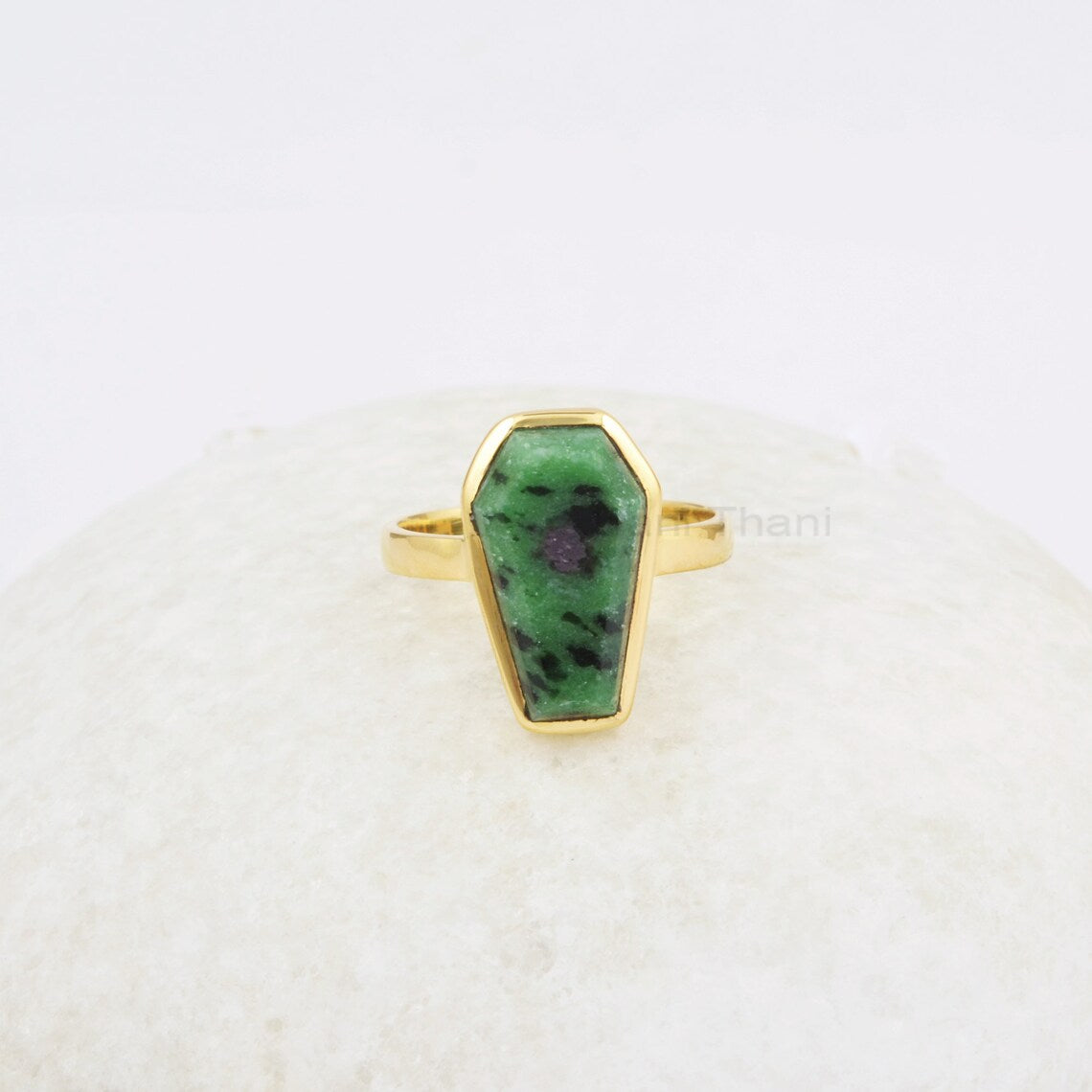 Ruby Zoisite Ring - 925 Sterling Silver - 10x17mm Coffin Ring - Rose Gold Ring - High Quality Jewelry - Gift For Her - Jewelry For Healing