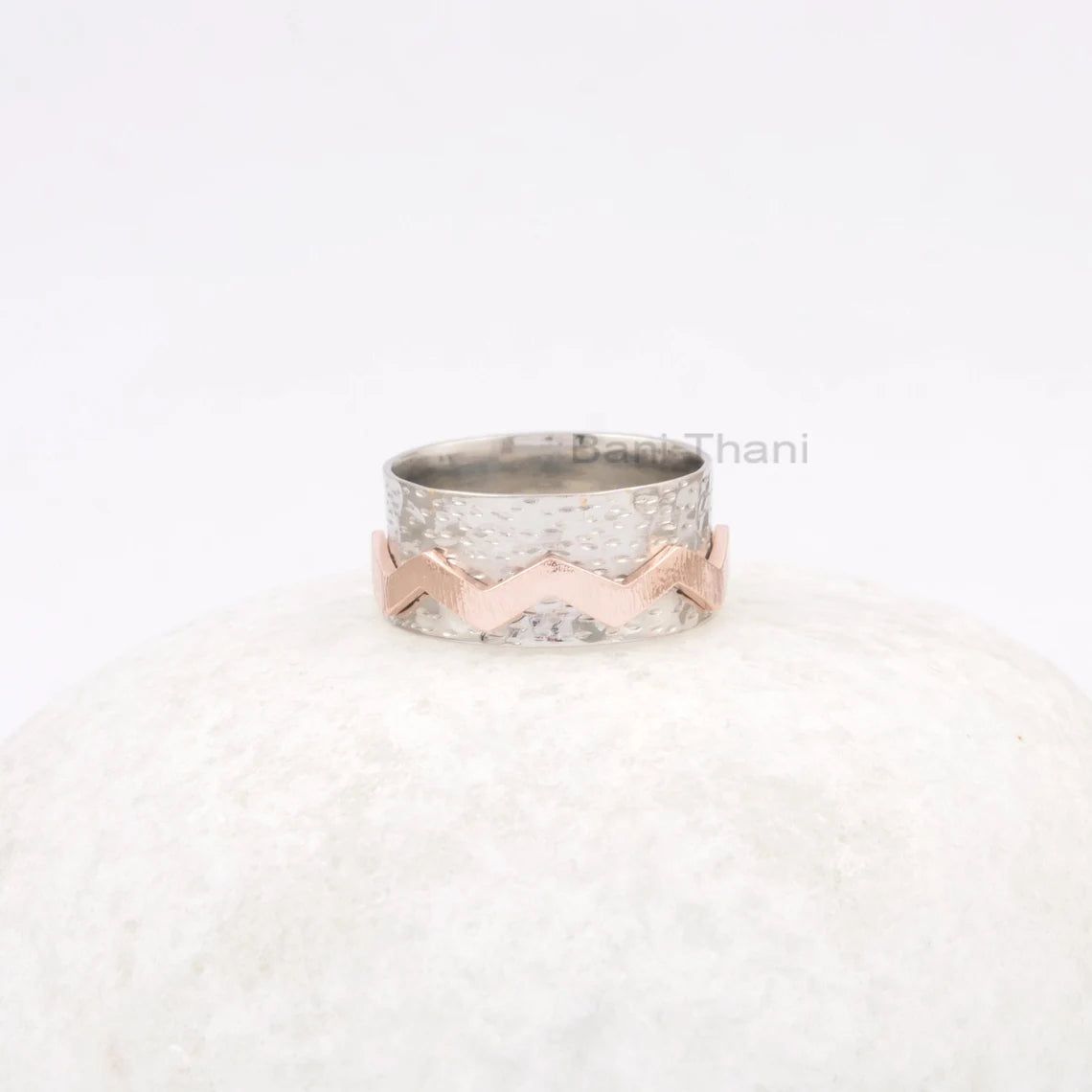 Silver Spinner Ring - Zig Zag Spinning Band - Fidget Spinner Ring - Yoga Ring - Anxiety Ring - Gift for Anniversary- Jewelry for Sale