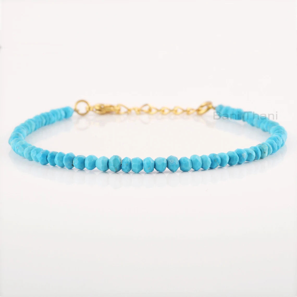 Sleeping Beauty Turquoise Bracelet, 3mm Arizona Turquoise Beaded Gemstone Bracelet, Handmade Minimalist Bracelet For Women, Gift For Sister