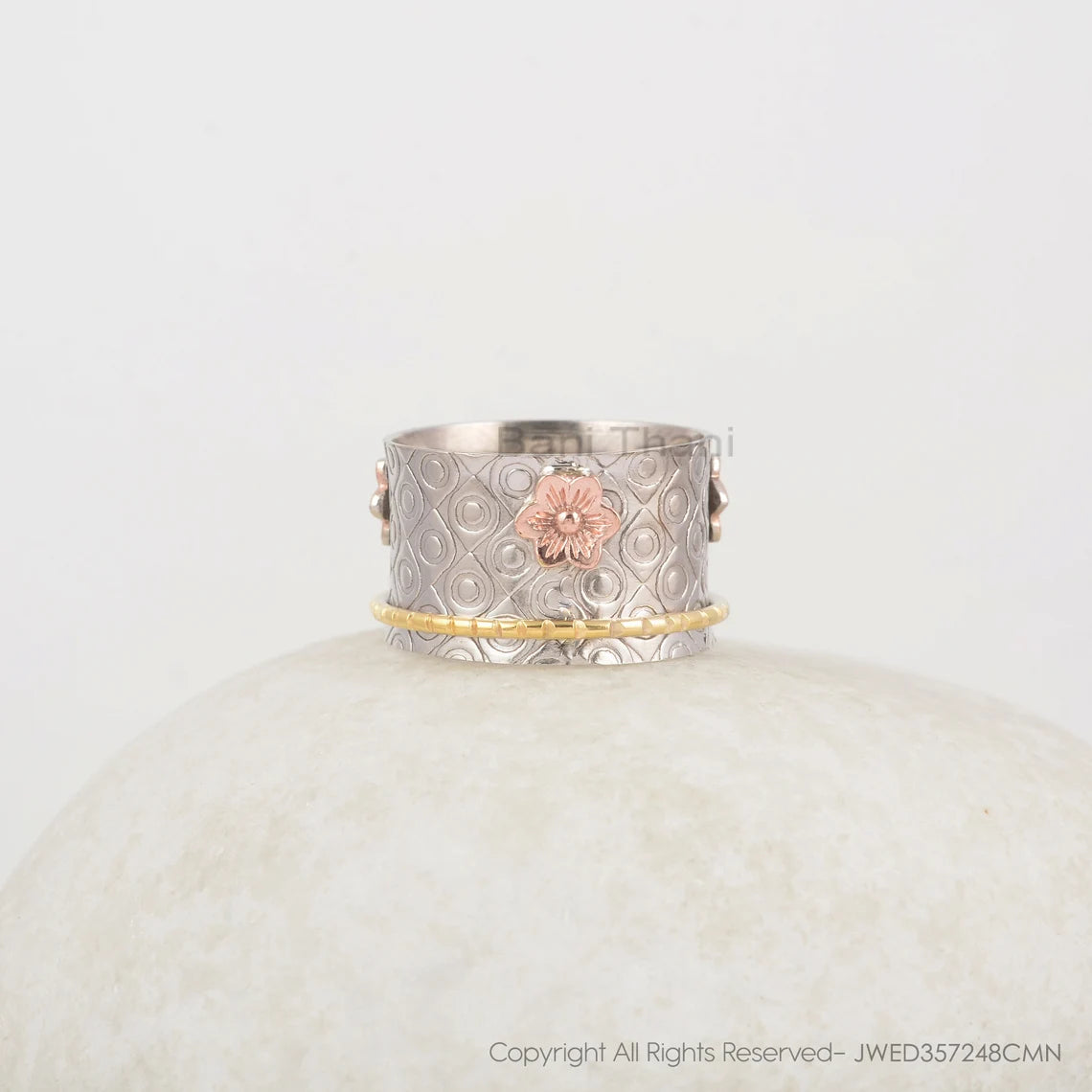 Textured Silver Spinner Band - Flower Silver Ring - Sterling Silver - Spinner Ring - Gemstone Jewelry - Gift For Her - Jewelry For Sale