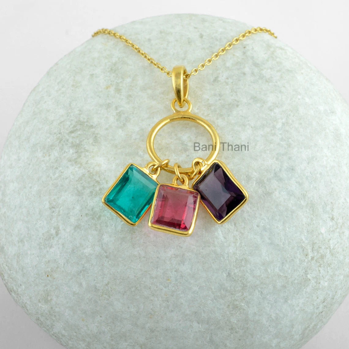 Three Stone Necklace - Gold Plated Pendant Pendant Necklace - Solid Silver - Natural Stone Jewelry - Jewelry For Prom - Gift For Bridesmaid