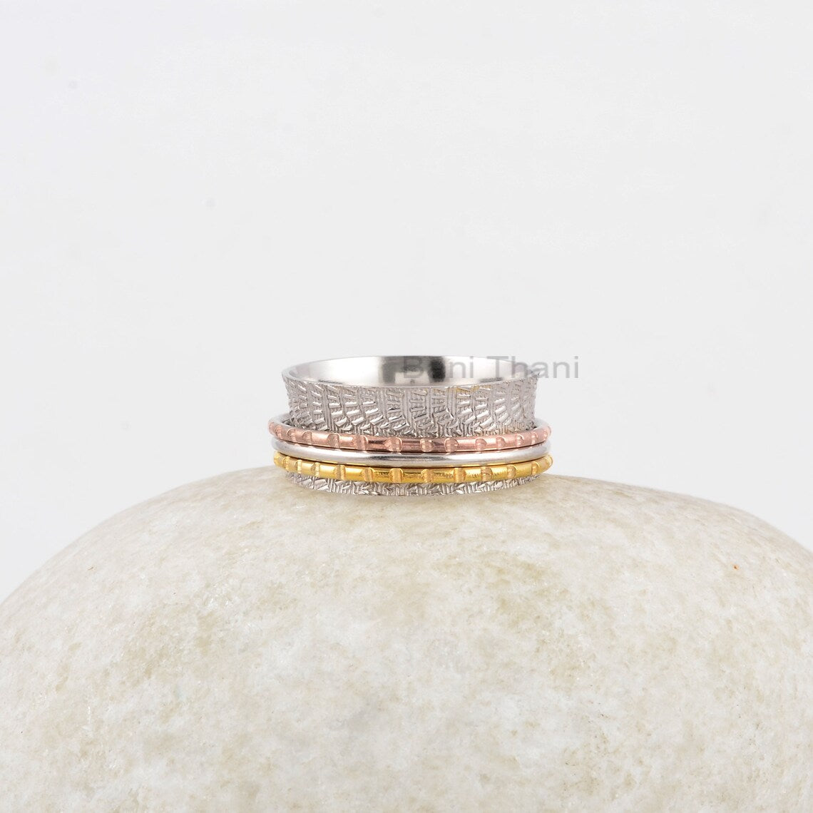 Three Tone Spinning Ring - Handcrafted Boho Ring - Pure Silver - Anxiety Ring - Fidget Band - Jewelry For Protection - Gift For Wedding Day