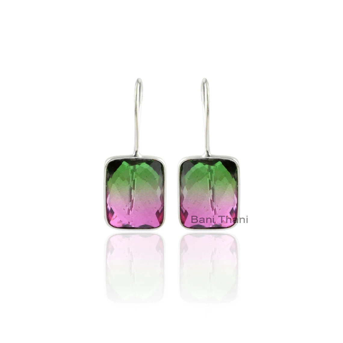 Tourmaline Bi Doublet Quartz 12x16mm Cushion Gemstone Drop Earrings-Sterling Silver Dangle Earrings-New Year Gift, Christmas Gift Earrings