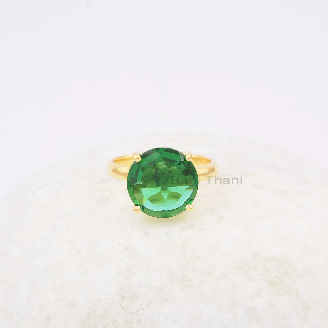 Emerald Quartz Ring - 12mm Round - 925 Sterling Silver - Gold Plated Ring - Man Made Jewelry - Gift For Young Lady - Jewelry For Inspiration