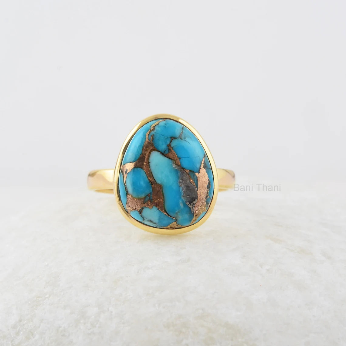 Turquoise Ring, Copper Blue Turquoise 12x14mm Nugget Gemstone Ring, 18k Gold Plated Ring, 925 Sterling Silver Ring