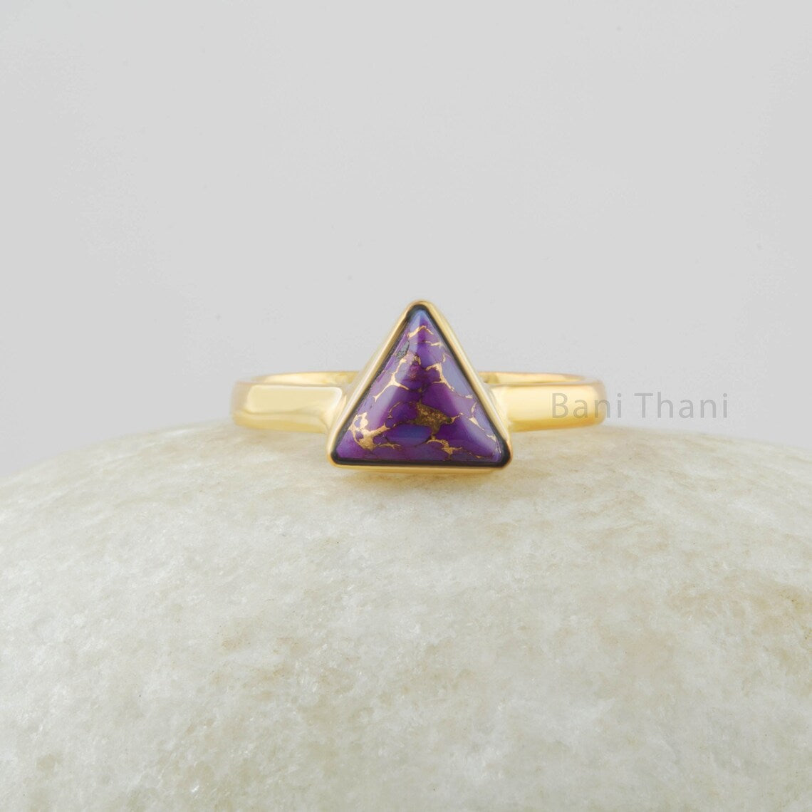 Turquoise Ring, Sterling Silver Gold Plated Ring, 8mm Triangle Purple Copper Turquoise Ring, Gift For Anniversary, Silver Jewelry For Women