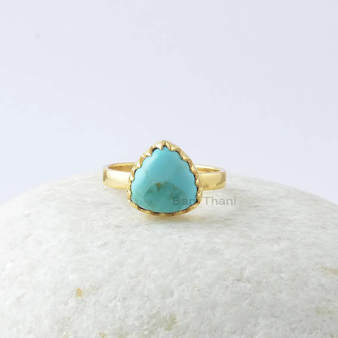 Turquoise Silver Ring, Arizona Turquoise 10x10mm Trillion Zig Zag Bezel Silver Ring, Gemstone Ring, Sterling Silver Ring, Wedding Gift