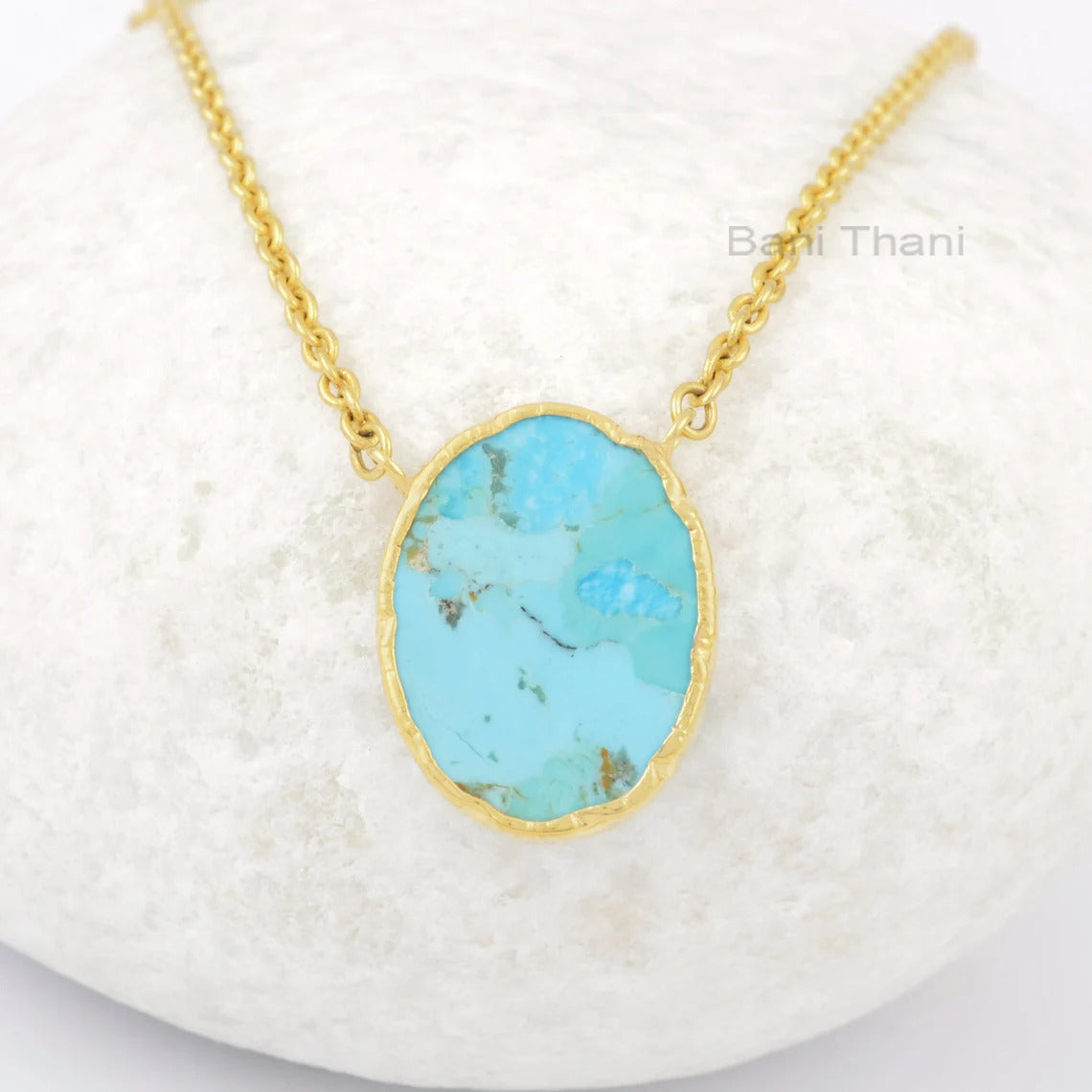 Unique Silver Arizona Turquoise Necklace, 17x22mm Oval Gemstone Necklace, Gold Plated Sterling Silver Necklace, Surprise Necklace Jewelry