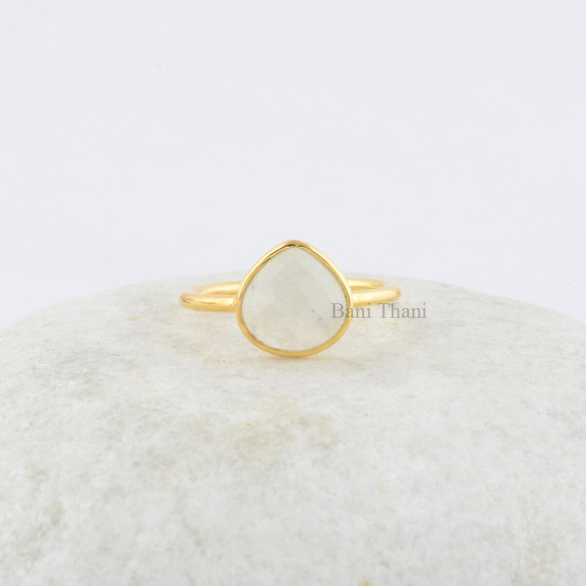 White Rainbow moonstone Faceted Pear shape Ring - Gemstone Pear Ring - Micron Gold Plated 925 Sterling Silver Bezel Ring Jewelry For Womens