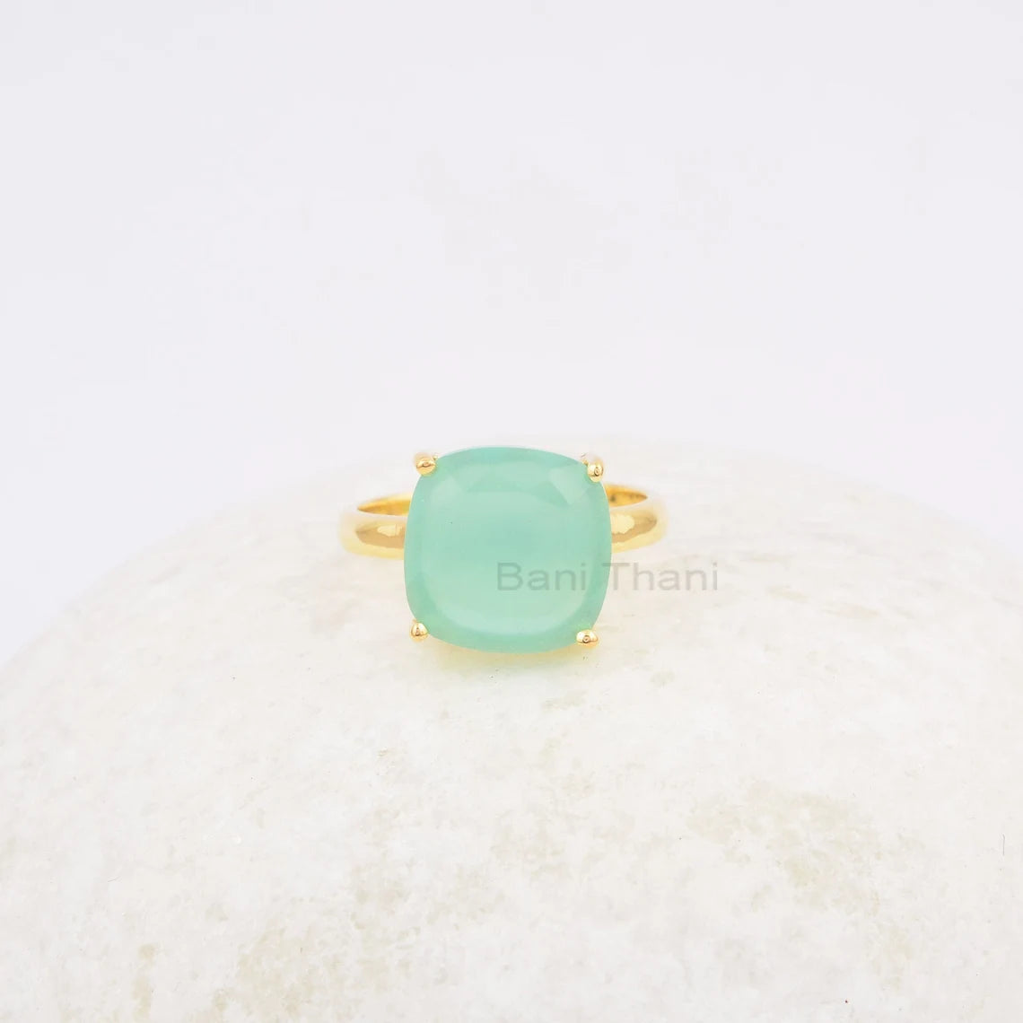 Womens Ring - Aqua Chalcedony Gemstone Silver Ring - Gold Plated Ring - 925 Sterling Silver Ring - Thanksgiving Gift - Birthday Gift Ring
